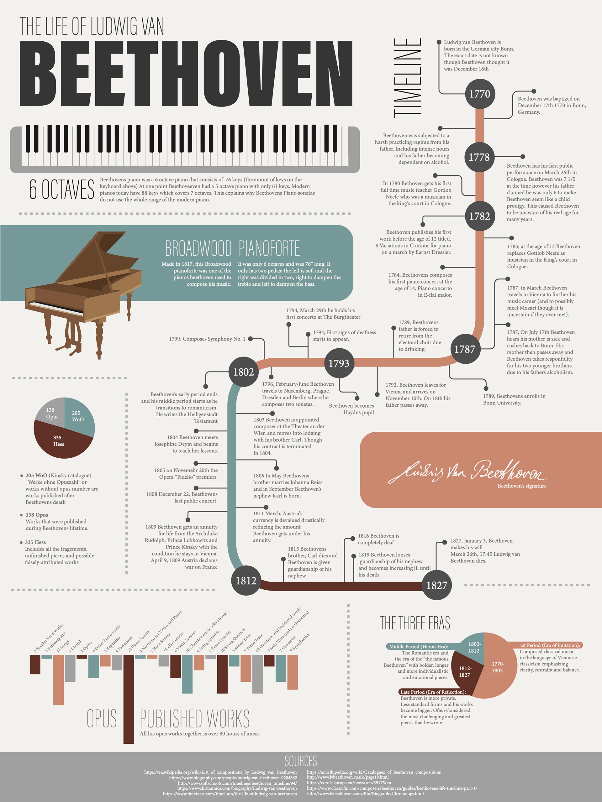 Beethoven is a favorite composer of mine so I made this infographic poster to help me understand the timeline of his life better.